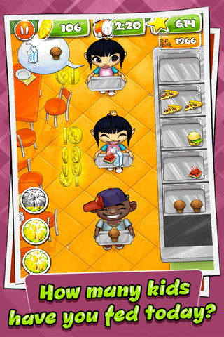 《欢乐孩子王》是一款可爱的模拟经营游戏,游戏玩法比较简单,但是也有点考验玩家的反应和手速。游戏中玩家扮演孩子王,任务是拿孩子门喜欢的食物给他们吃, 用这些甜美的食物来哄孩子们开心!