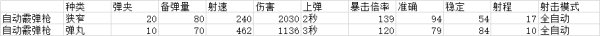 弹丸:缺点太多不建议使用。8倍射速伤害只有四分之一,只能打打无甲目标了,弹匣小很容易打空备弹,需要配合各职业的弹匣技能使用。